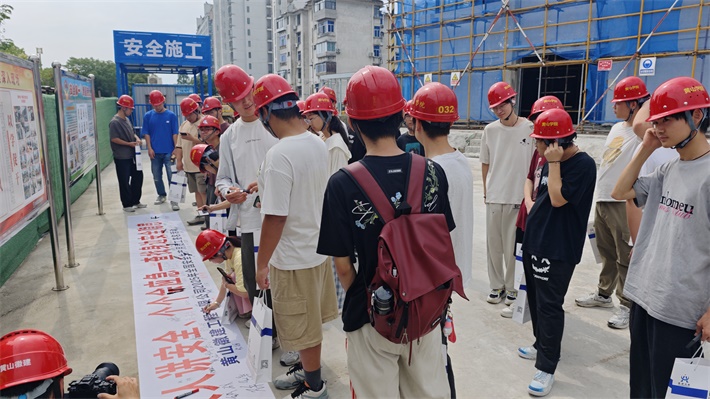 黃山徽建工程有限公司的技術(shù)人員和工程師們擔(dān)任指導(dǎo),為同學(xué)們?cè)敿?xì)講解了施工流程、技術(shù)要點(diǎn)和安全注意事項(xiàng)。同學(xué)們深入施工現(xiàn)場(chǎng),實(shí)地觀察了基礎(chǔ)工程、主體結(jié)構(gòu)施工、建筑材料的使用、施工現(xiàn)場(chǎng)的管理與組織并積極提問(wèn),與現(xiàn)場(chǎng)技術(shù)人員進(jìn)行交流互動(dòng)。